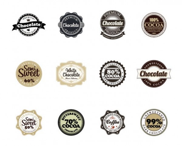 11 Stylish premium chocolate UI labels vector set in EPS format.