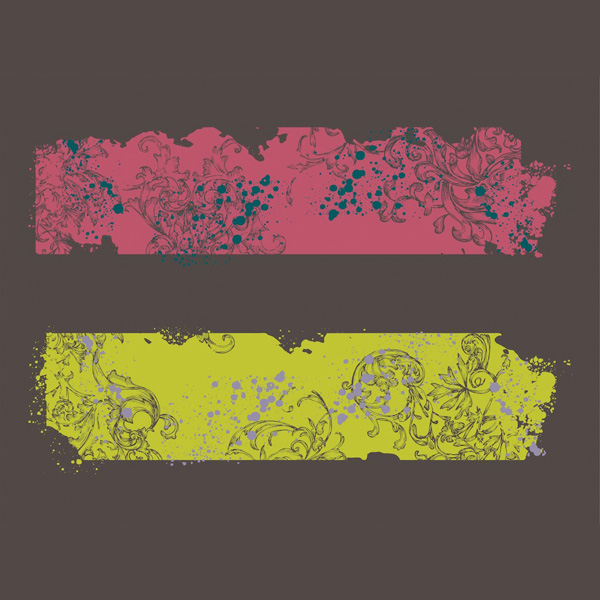 2 Ripped grungy floral banners with splatter effects – vector Ai set in red and yellow.