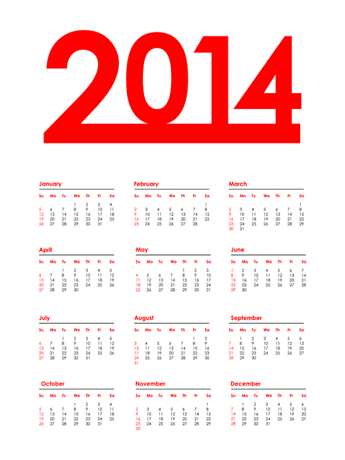 Free EPS file 2014 Calendar grid vector design 05 download