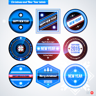 Name: 2015 Christmas and New Year labels blue style vector 01