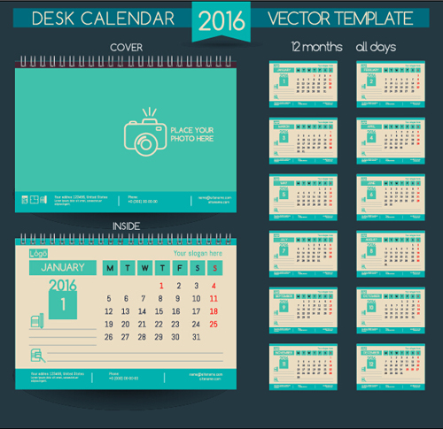 Free EPS file 2016 New year desk calendar vector material 17 download