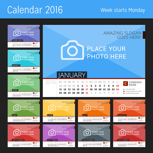 Free EPS file 2016 New year desk calendar vector material 18 download