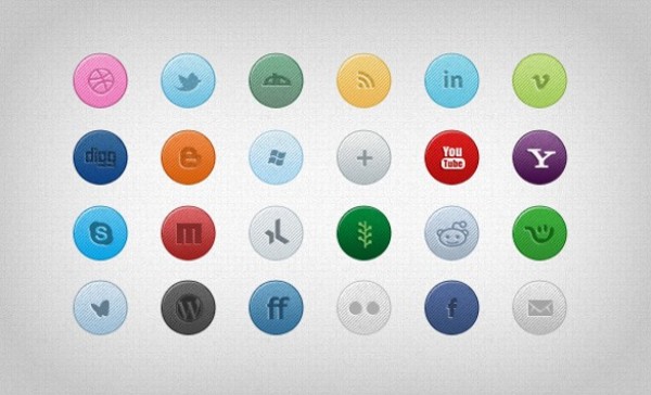 Sweet set of 24 minimal round textured social networking icons in psd.