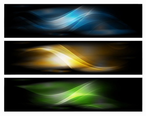 3 Flowing wave abstract vector banners set with light glow. EPS format.