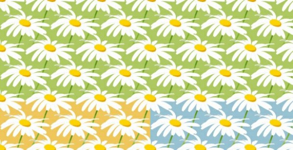 3 Cheerful daisy tileable patterns set – green, yellow and blue – JPG 100px format.