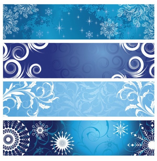 4 Web UI Christmas banners set – floral, scroll and snowflakes – vector EPS set.