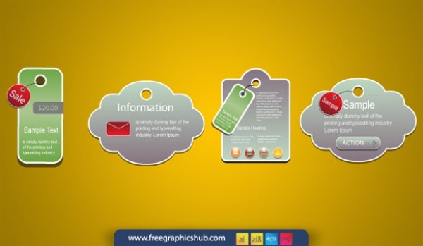 4 Stylish web labels with tags or buttons vector set – Ai, EPS, and SVG.