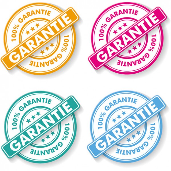 4 Colorful 100% Guarantee labels with angled banners – vector EPS set.