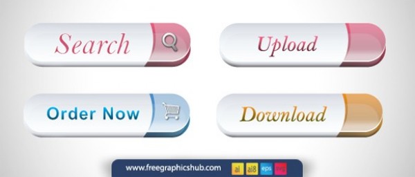 4 Oval 3D call to action UI buttons vector set – Upload, Download, Order Now and Search – vector Ai, Eps and SVG.