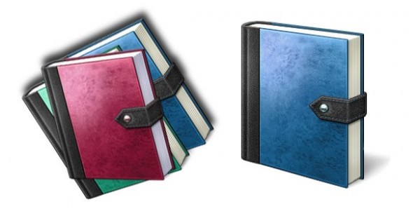 6 Deluxe hard cover books icons with leather closure strap – various colors PSD.