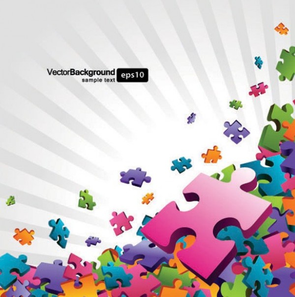 6 Colorful jigsaw puzzle pieces abstract vector background.