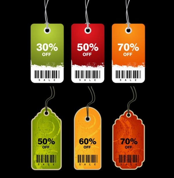 6 Trendy sales tags – with bar code – vector set.