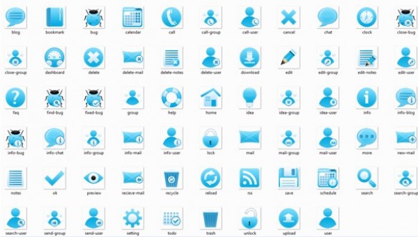 75 Blue web UI icons pack in PNG – 6 size variations.