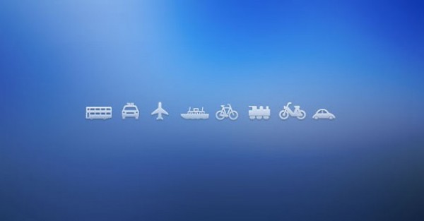 8 Finely crafted transport icons set – bus, cars, flight, bicycle, train – PSD.