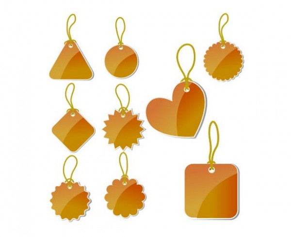 9 Sales tags and labels set shaped as hearts, serrated, triangle, square, and floral – all with strings attached. Ai and EPs formats.