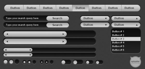 Pixel perfect web UI elements pack – sliders, toggles, buttons, search field, navigation menu – psd.
