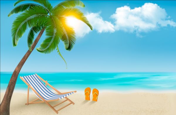 Free EPS file Beach chair and palms tree with travel background vector 01 download