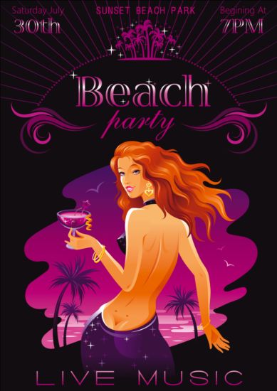 Free EPS file Beach party poster with beautiful girl vector 07 download