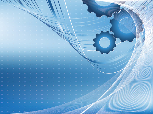 Blue business background with gears, wave lines, and binary code style backdrop. Vector EPS