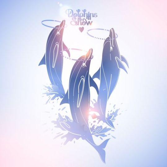 Free EPS file Blue dolphin with summer background vector 07 download