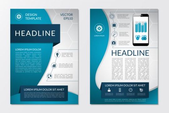 Free EPS file Blue modern brochure flyer cover vector set 02 download