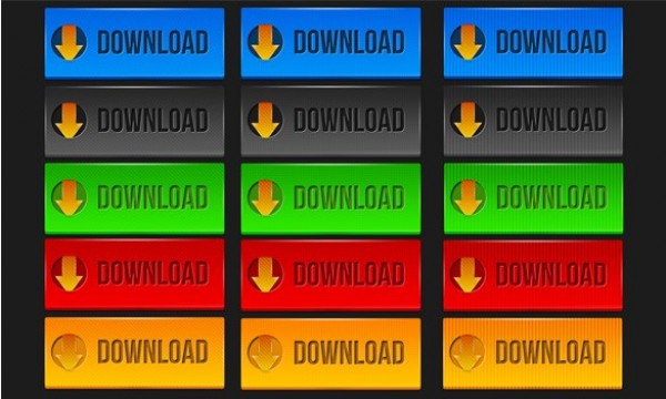 Big and bold textured web download buttons – 3 texture styles and 5 color variations – PSD set.