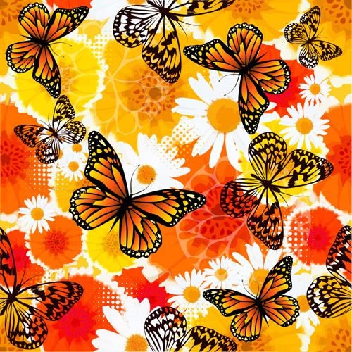 Free EPS file Butterflies with floral vector seamless pattern vector 01 download