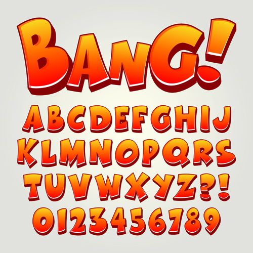 Name: Cartoon bang alphabet with numbers vector