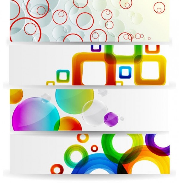 Set of 3 abstract circles, bubbles and geometric squares vector banners.