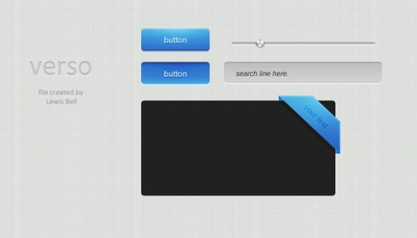 Nice set of web UI elements in psd – search field, slider, buttons and text box.