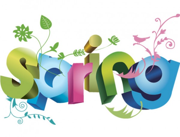 Joyfully SPRING letters with floral adornment – vector.