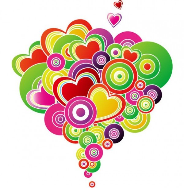 Vibrant colored collage of hearts and circles vector graphic – EPS format.