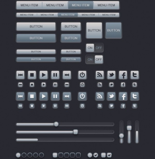 Blue stylish vector web UI kit – includes menus, sliders, buttons, icons, dividers… plus much more. AI format.
