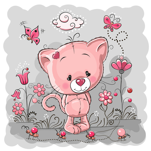 Free EPS file Cute cat with love elements vectors 05 download