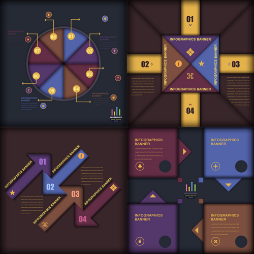 Name: Dark color infographics business tamplate vector 02
