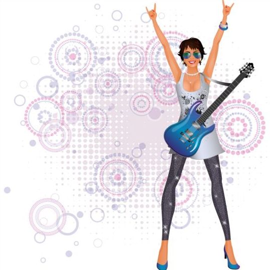 Name: Fashion girl and guitar background vector 02