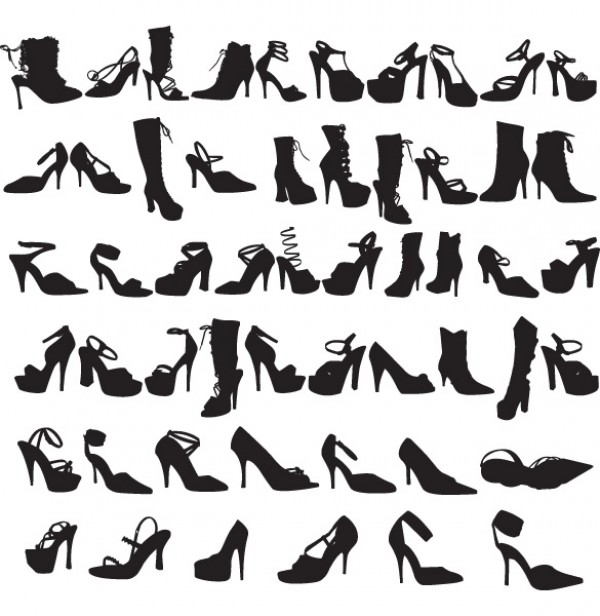 Huge pack of ladies fashion shoes and boots vector silhouette.