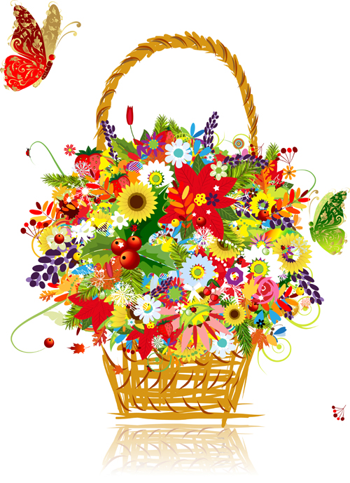 Free AI ,EPS file Flower baskets and butterfly vector 02 download