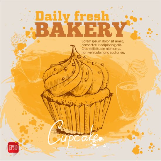 Free EPS file Fresh bread with bakery poster hand drawn vector 02 download