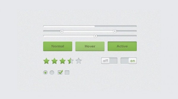 Fresh green and grey web UI elements kit – sliders, buttons, star rating, switches, radio buttons, check boxes – PSD