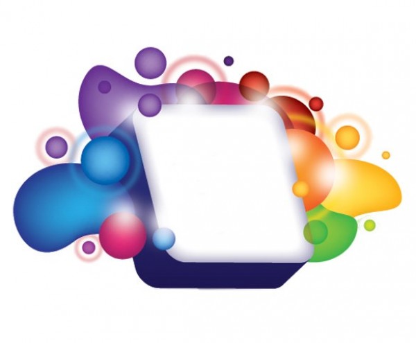 Colorful balloon shapes abstract background with white frame center – PSD.