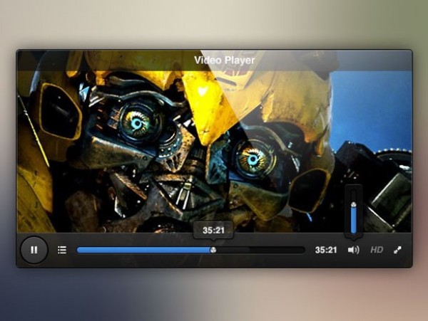 Modern sleek video player UI with crisp slider and controls and glossy screen. PSD.