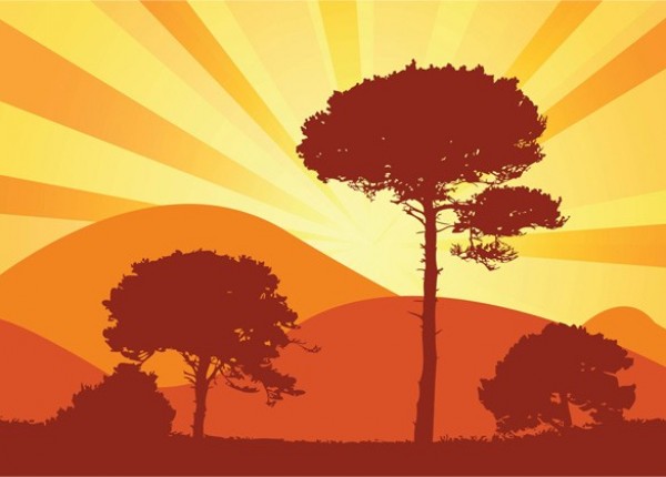 Orange tone silhouette trees countryside vector background.