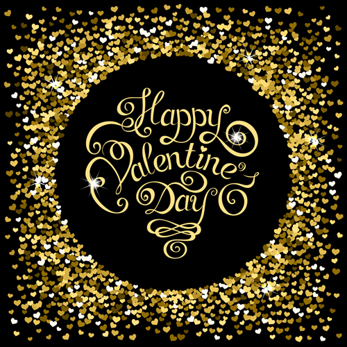 Name: Golden heart frame valentines day card vector