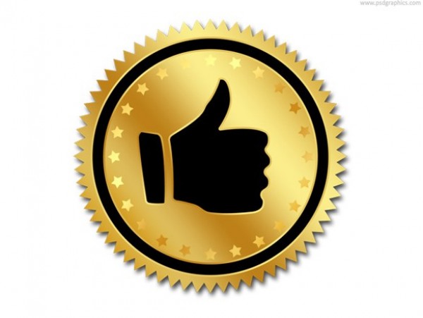 Thumbs up shiny gold quality seal with serrated edge – PSD.