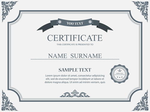 Name: Gray styles certificates template vector material 01