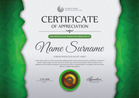 Free EPS file Green certificate template and geometric shape vector 02 download