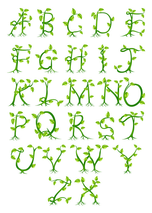 Free EPS file Green leaves alphabet excellent vector 03 download