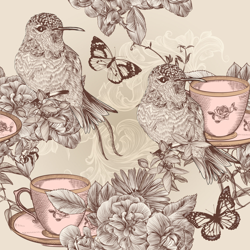 Name: Hand drawn birds vintage style vector 04