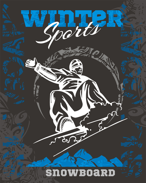 Free EPS file Hand drawn snowboard winter sport vector set 04 download